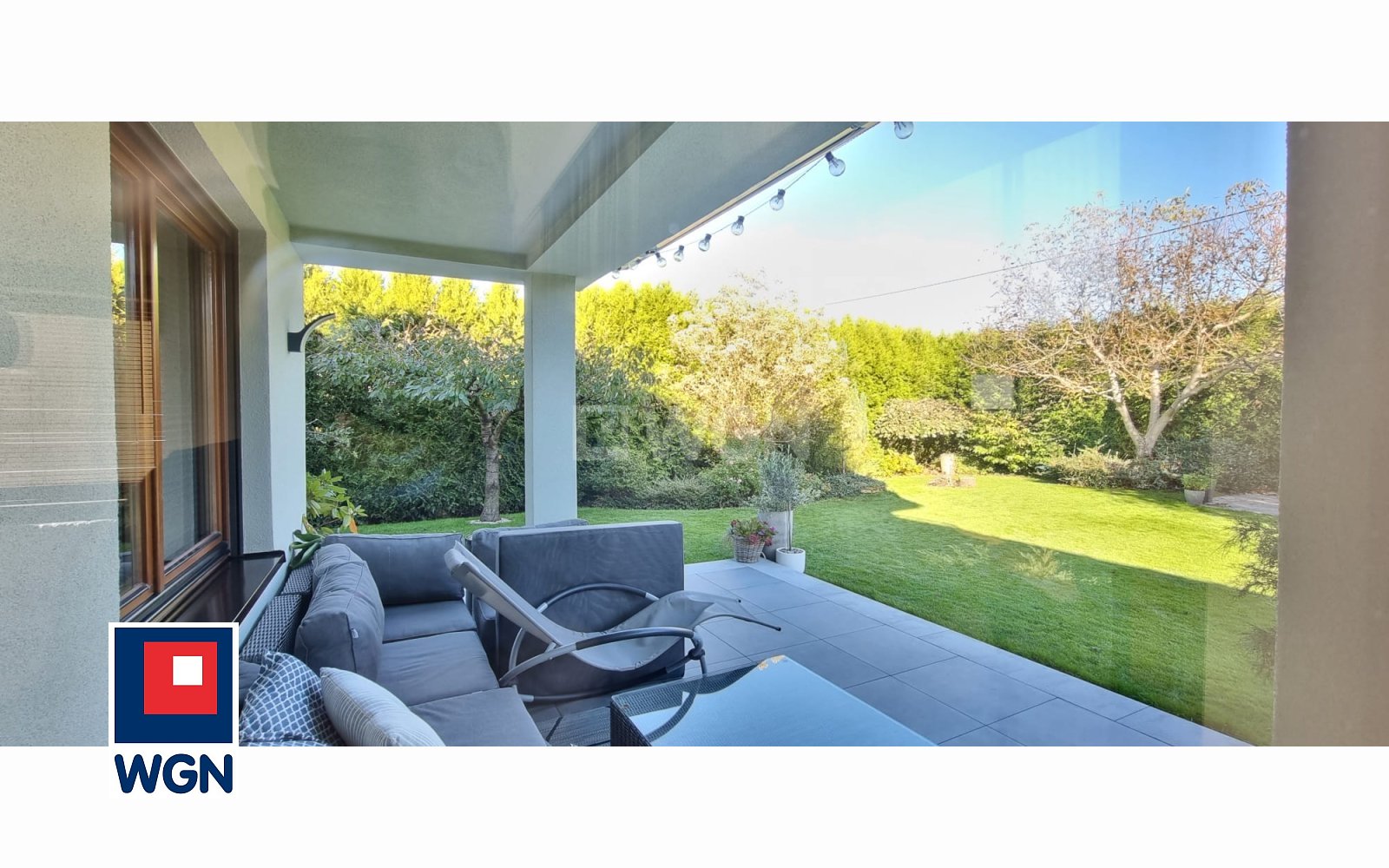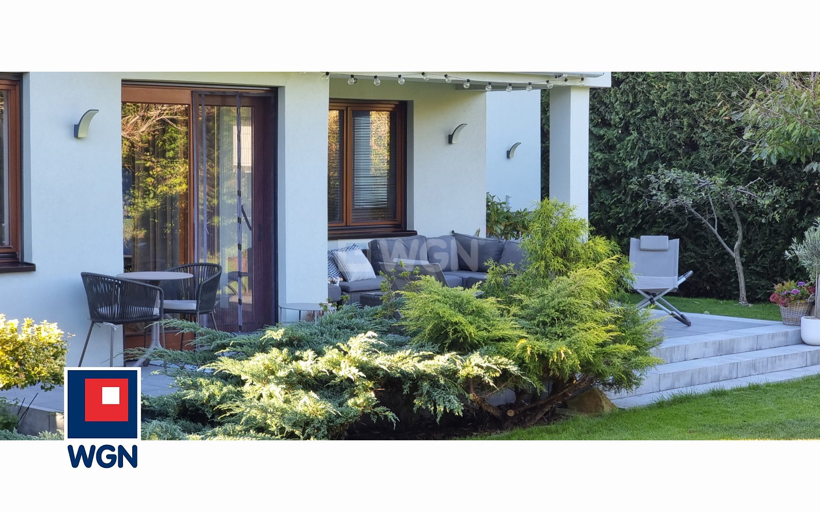 - kompletny ogród, tuje, drzewa owocowe, orzech włoski, krzewy, nasadzenia, trawnik z rolki z siatką przeciw kretom z systemem do podlewania połączonym z pogodynką i obsługiwany za pomocą aplikacji, koszony przez robota HUSQWARNA i dodatkowo słupki świetlne oraz punktowe oświetlenie
