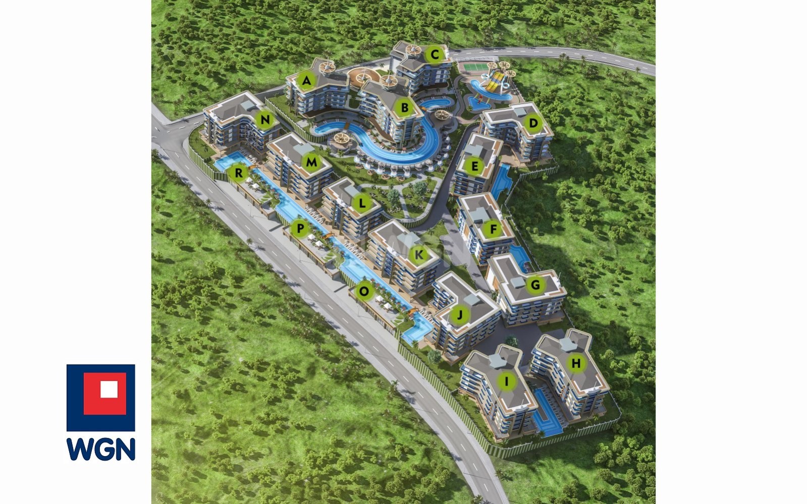Wodne Atrakcje: Baseny typu infinity, kaskadowe wodospady, zjeżdżalnie wodne dla wszystkich grup wiekowych oraz urocze ścieżki spacerowe.