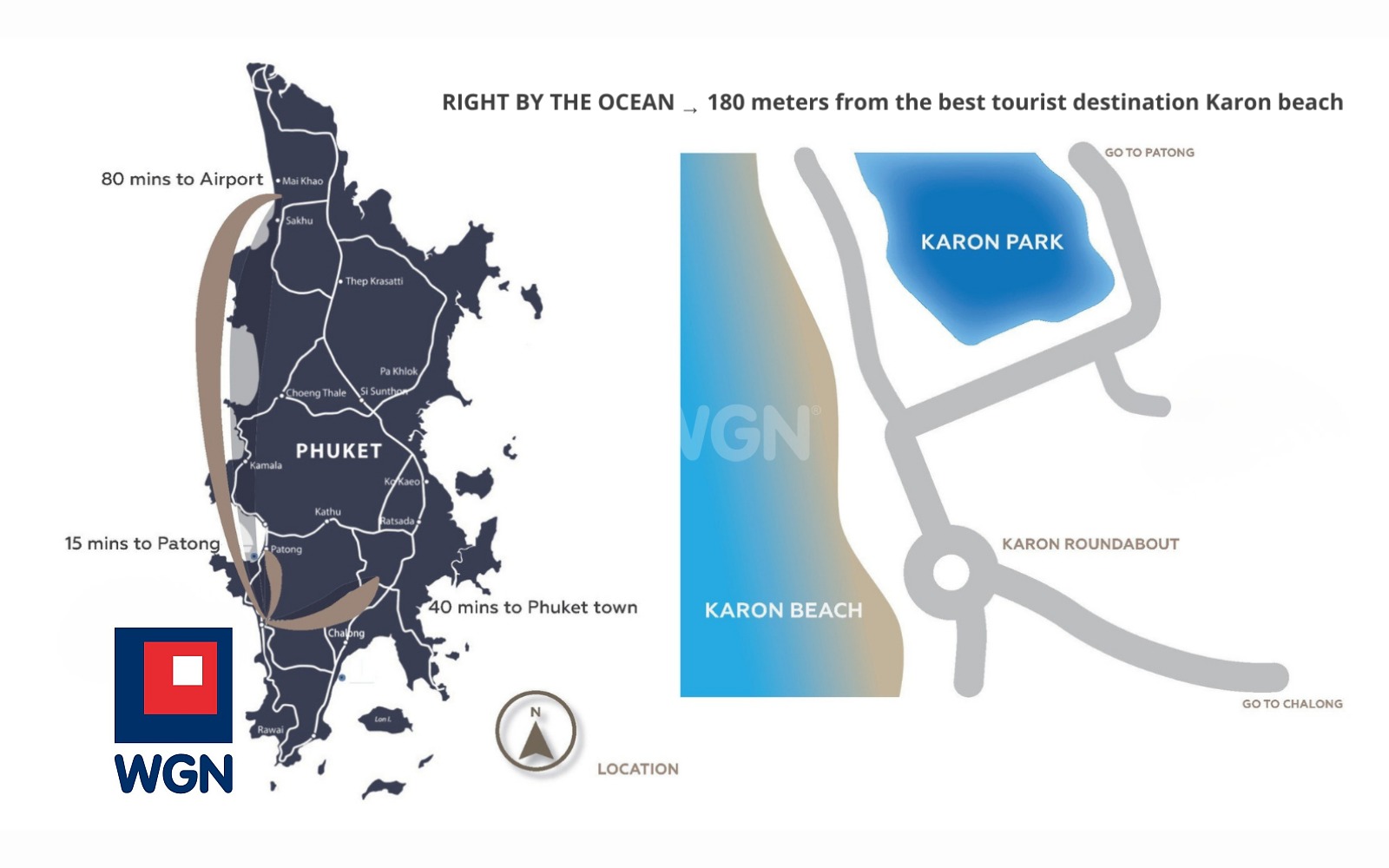 Według dokumentacji to zaledwie 180 metrów od plaży Karon (Twoje dane wskazują na 150 m w linii prostej i 300 m spacerem).