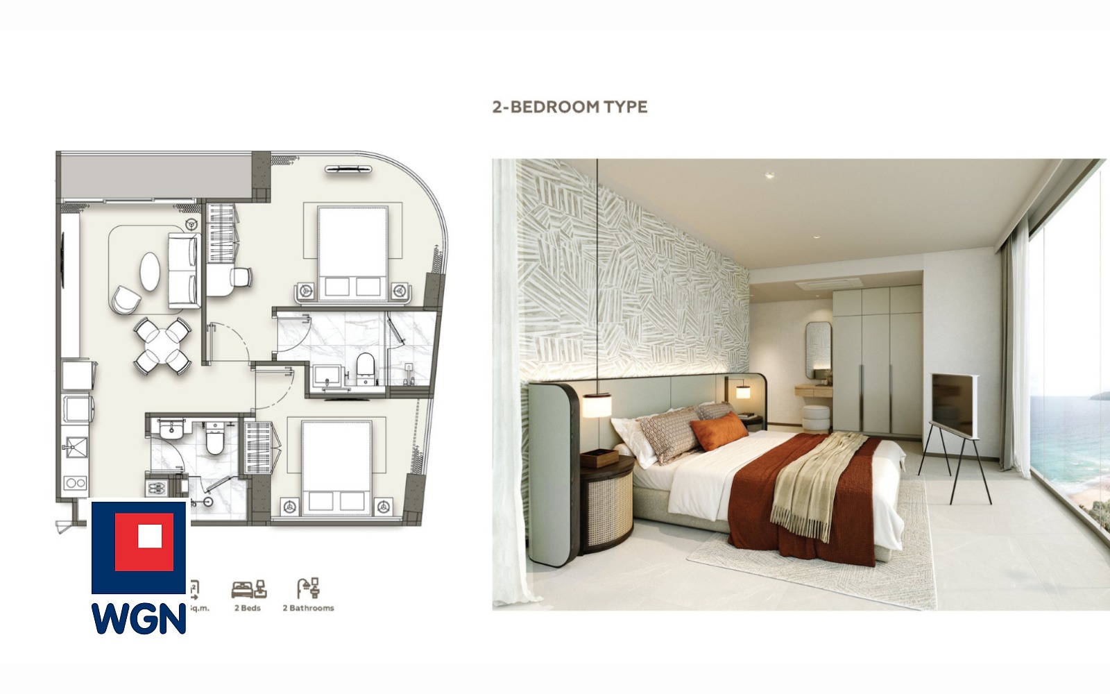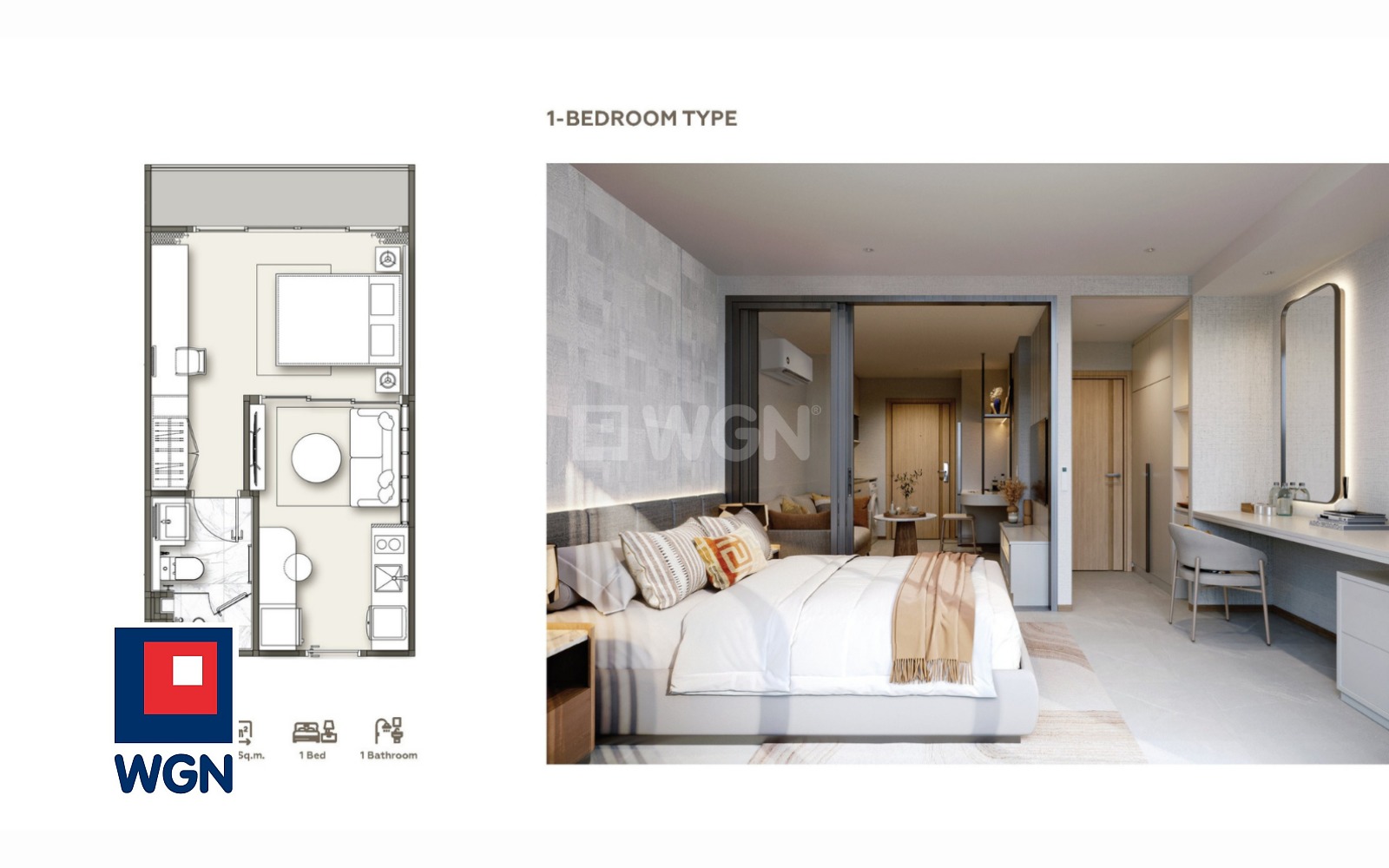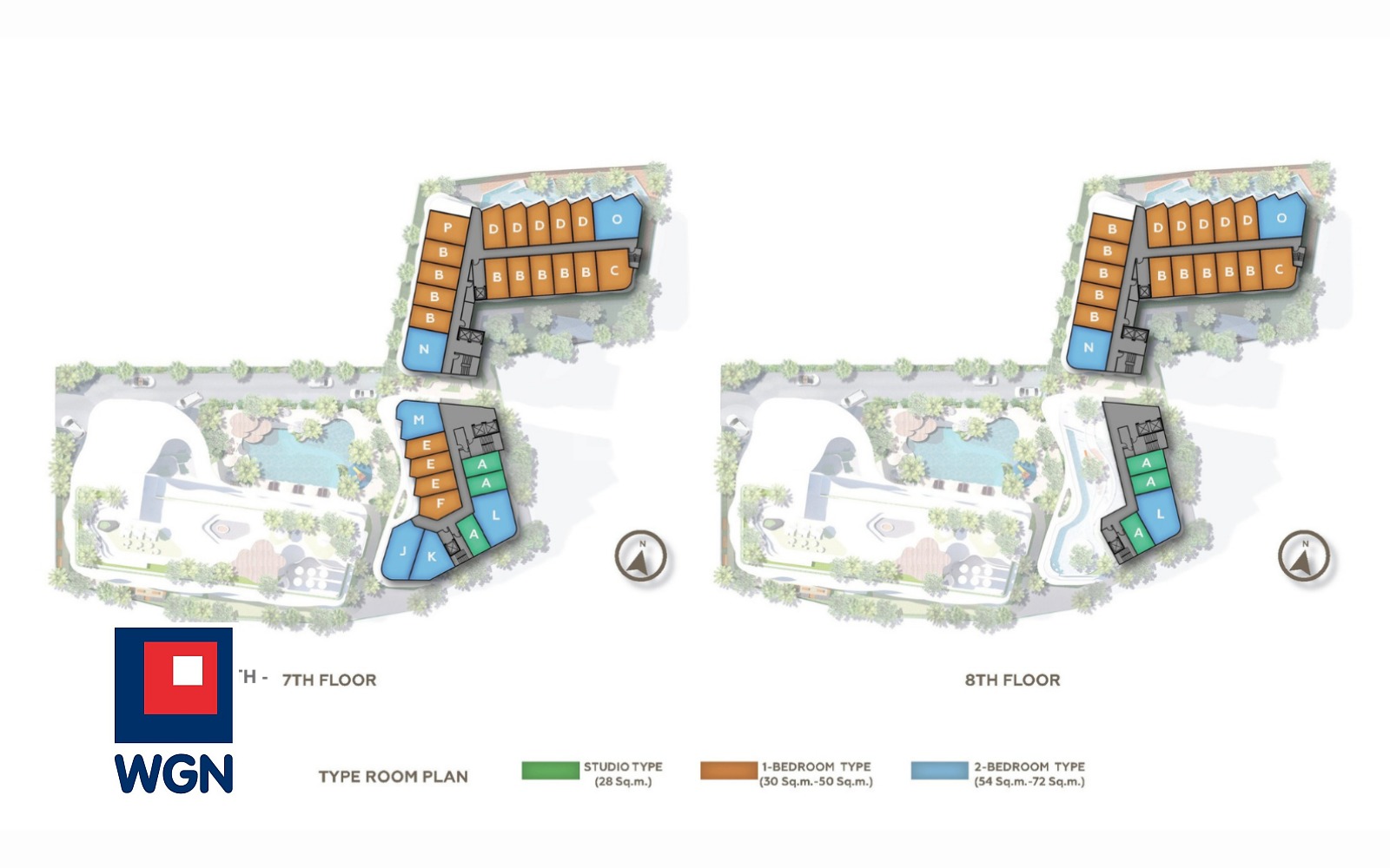 Dostępne są trzy główne typy jednostek: Studio (28 m2), 1-Bedroom (30?50 m2) oraz 2-Bedroom (54?72 m2).