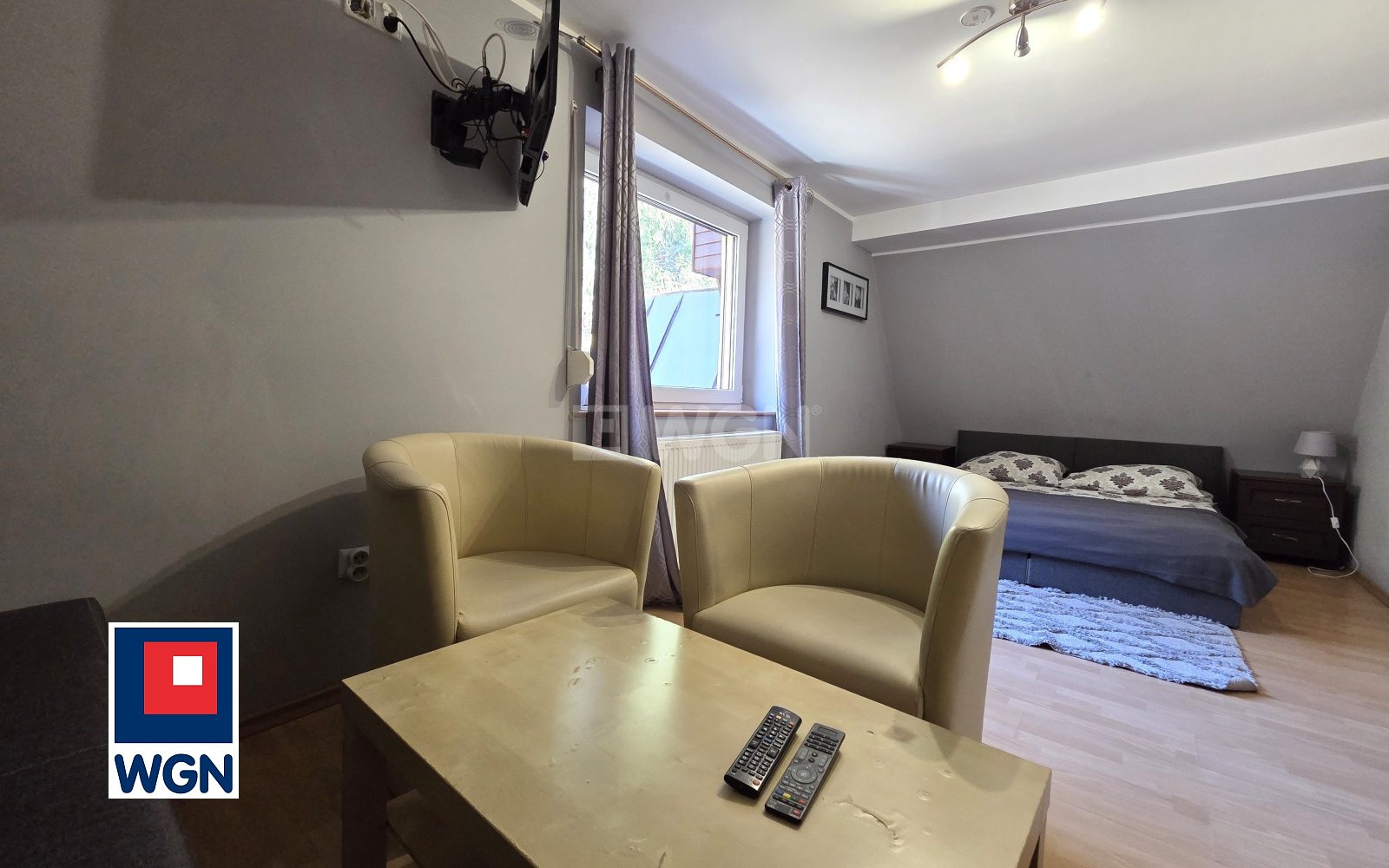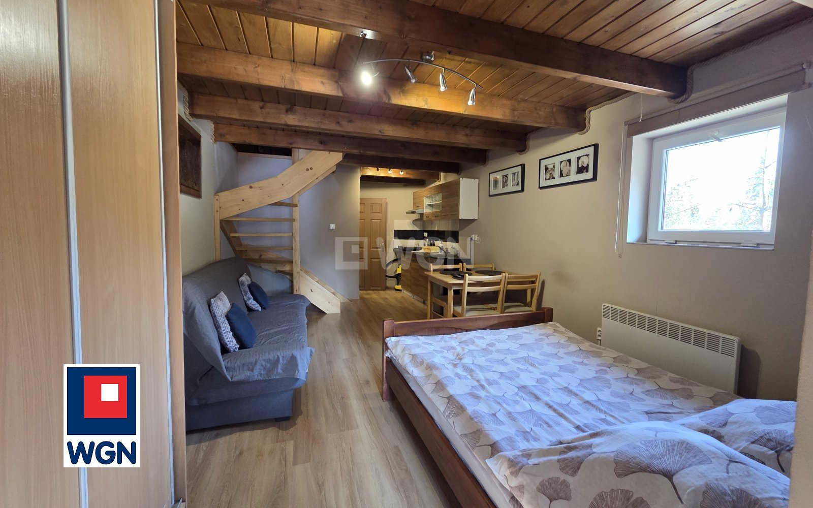 -salon z aneksem kuchennym i z częścią sypialnianą